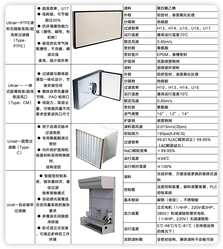 克拉克森可以供应满足工业、家居、移动三大空间的干净空气需求的全套空气过滤器,产品包括初效过滤器、中效过滤器、高效/超高效过滤器和其他过滤器产品,符合ISO16890全球行业新标准,被广泛应用于环境、能源、交通、医疗等行业。